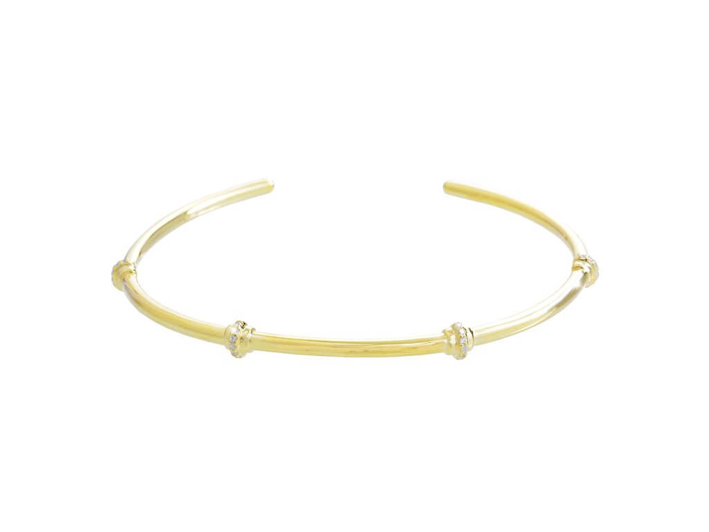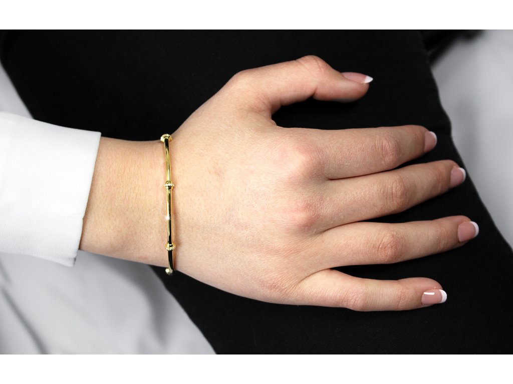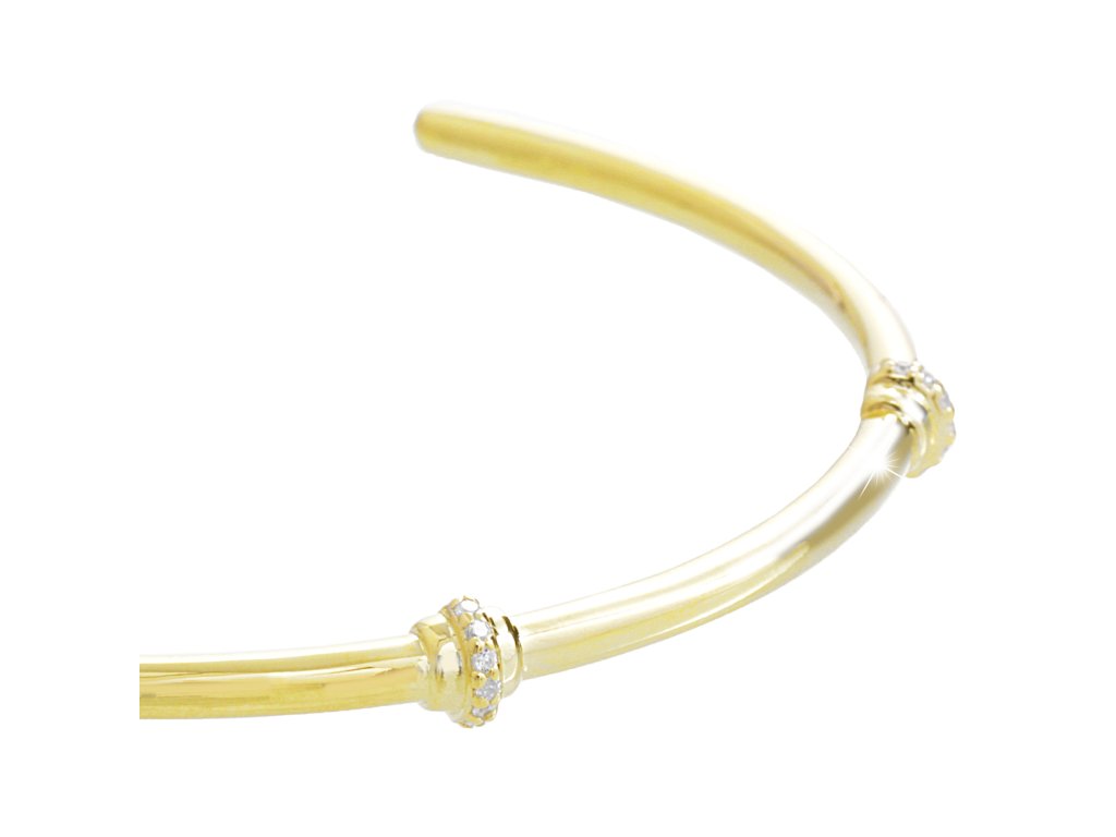Pozlacený stříbrný náramek pevný se čtyřmi ozdobnými prvky a s Kubickými zirkony Crystal (Stříbro 925/1000)