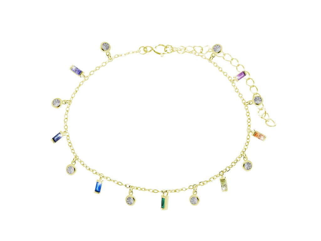 Pozlacený stříbrný náramek s barevnými ověsy s Kubickými zirkony Multi (Stříbro 925/1000)