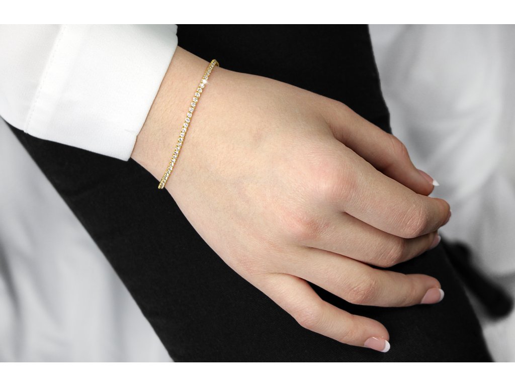 Pozlacený stříbrný náramek štras jednoduchý s Kubickými zirkony Crystal (Stříbro 925/1000)