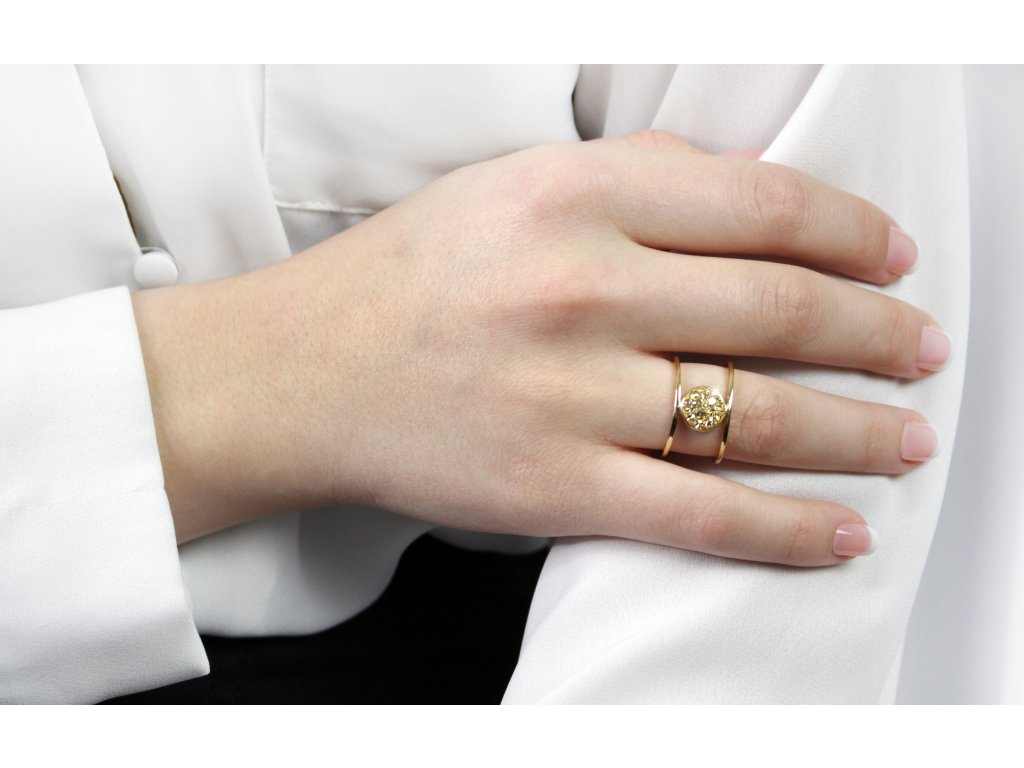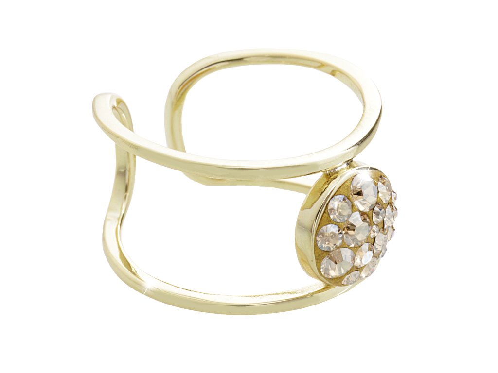 Pozlacený stříbrný prsten dva kroužky s kulatým lůžkem a krystaly Swarovski Golden Shadow (Stříbro 925/1000)