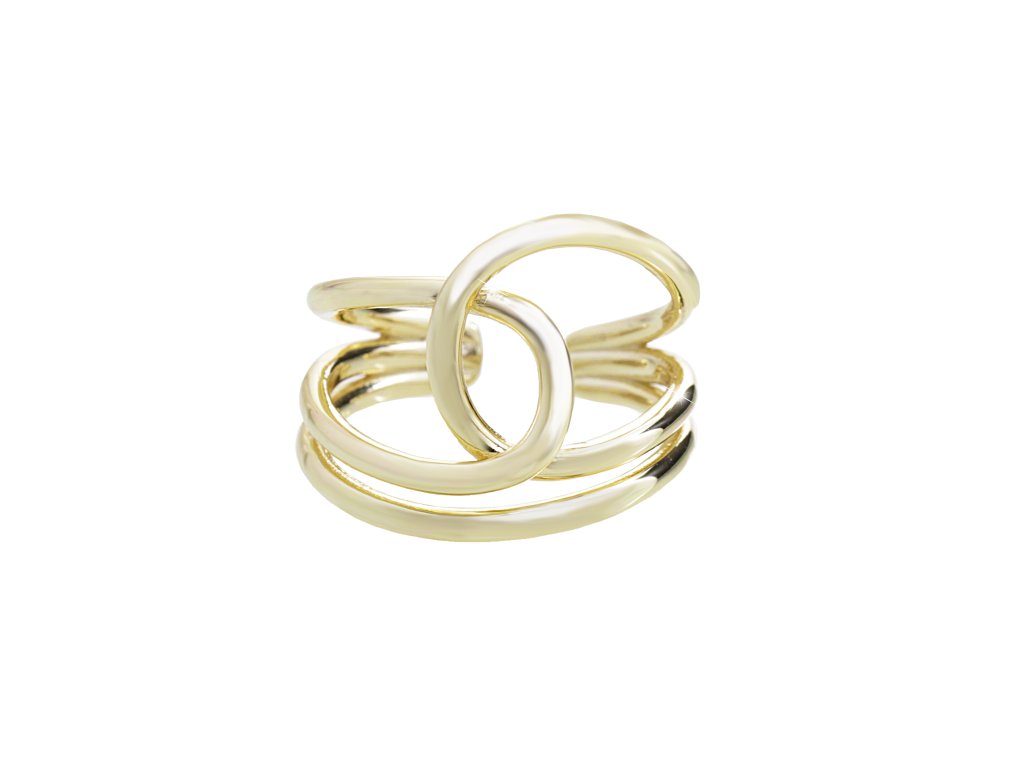 Pozlacený stříbrný prsten dva oblouky propletené s kroužkem bez krystalů (Stříbro 925/1000)
