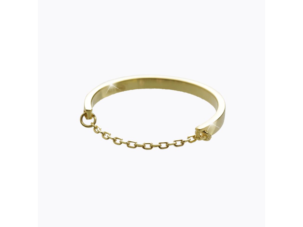Pozlacený stříbrný prsten jeden řetízek bez krystalů (Stříbro 925/1000)