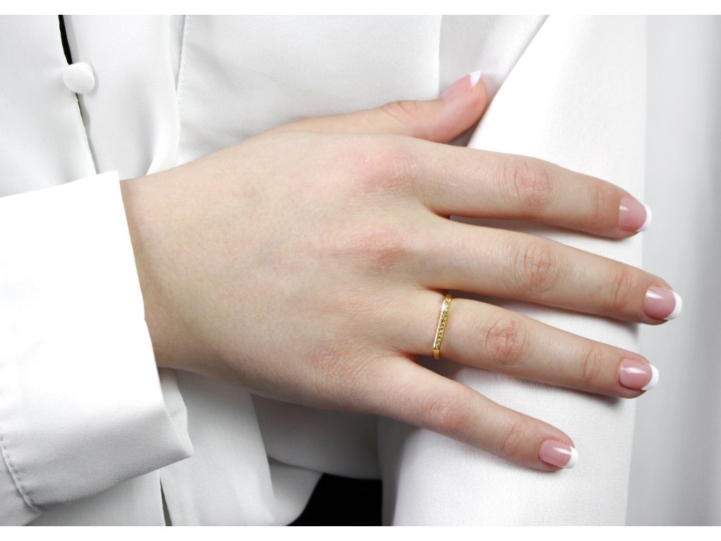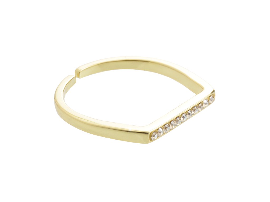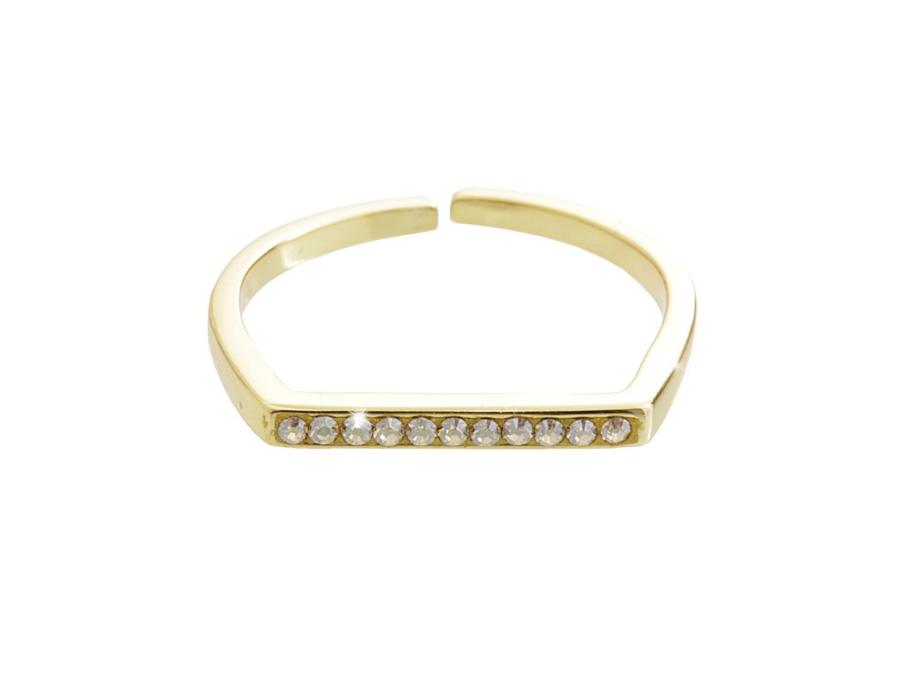 Pozlacený stříbrný prsten malá čárka ve středu s krystaly Swarovski Golden Shadow (Stříbro 925/1000)