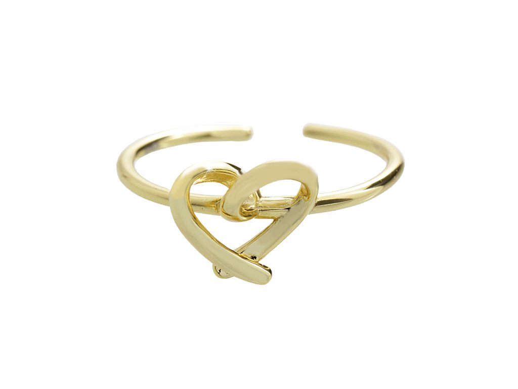 Pozlacený stříbrný prsten mini překřížené srdce kovové bez krystalů (Stříbro 925/1000)