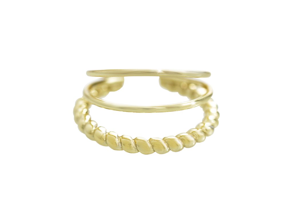 Pozlacený stříbrný prsten tři kruhy v jednom kroucený bez krystalů (Stříbro 925/1000)
