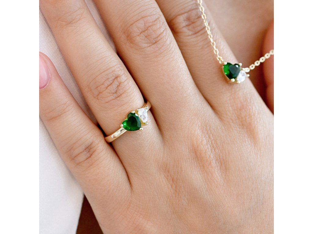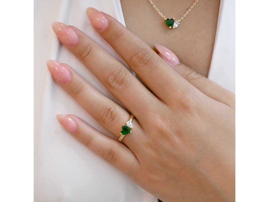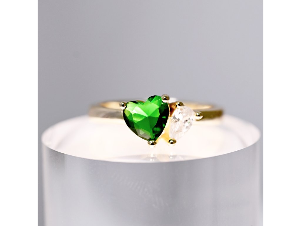 Pozlacený stříbrný prsten zelené srdíčko 15039.3