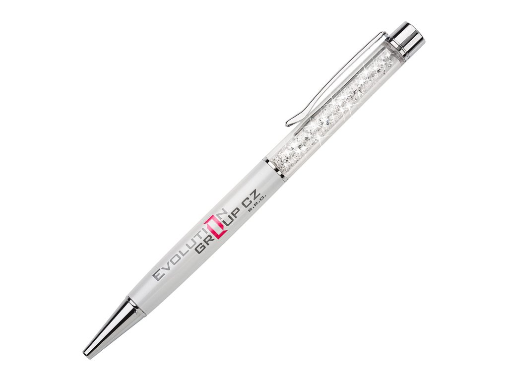 Elegantní propiska zdobená krystaly Swarovski je luxusní psací doplněk, který zaujme svým jedinečným designem. Tělo propisky je vyrobeno z kvalitního materiálu, často kovového nebo akrylového, a je zdobeno velkým množstvím bílých krystalů Swarovski, které se třpytí na světle.