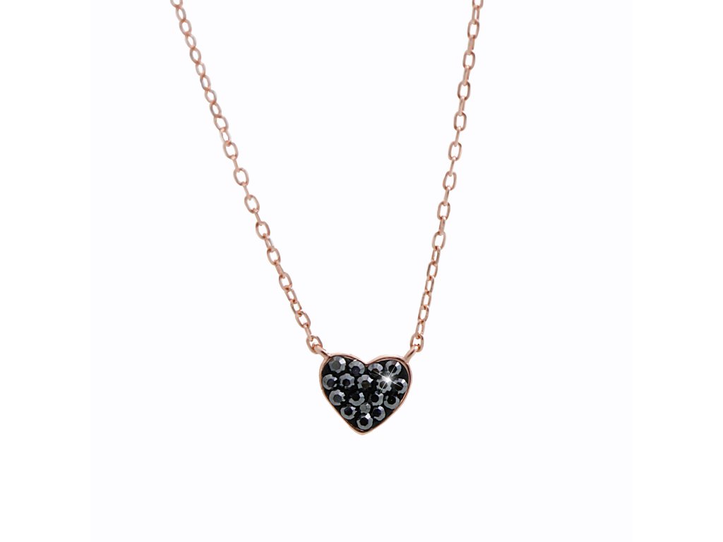 Růžově zlatý stříbrný náhrdelník malé srdíčko s krystaly Swarovski Hematit (Stříbro 925/1000)