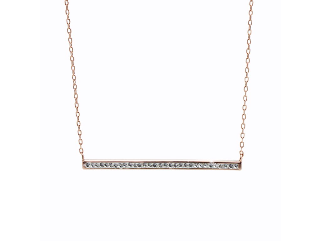 Růžově zlatý stříbrný náhrdelník s pruhem krystalů Swarovski Crystal (Stříbro 925/1000)