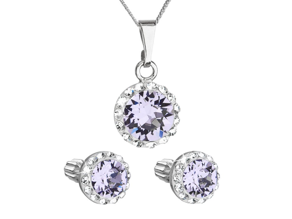 Sada šperků s krystaly Swarovski náušnice, řetízek a přívěsek fialové kulaté 39352.3 violet