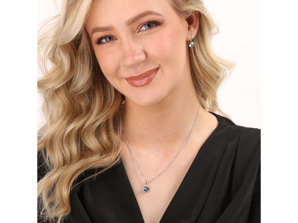 Sada šperků s krystaly Swarovski náušnice, řetízek a přívěsek modré kulaté 39140.3 aqua