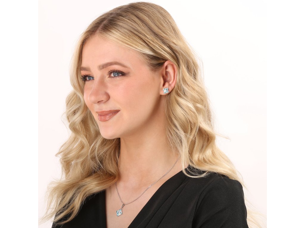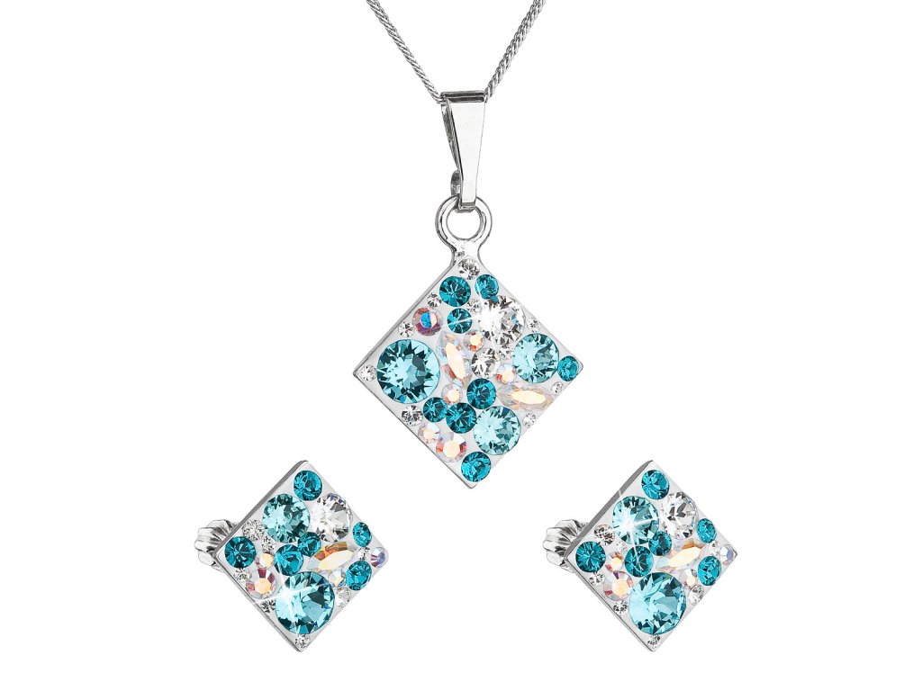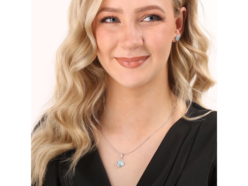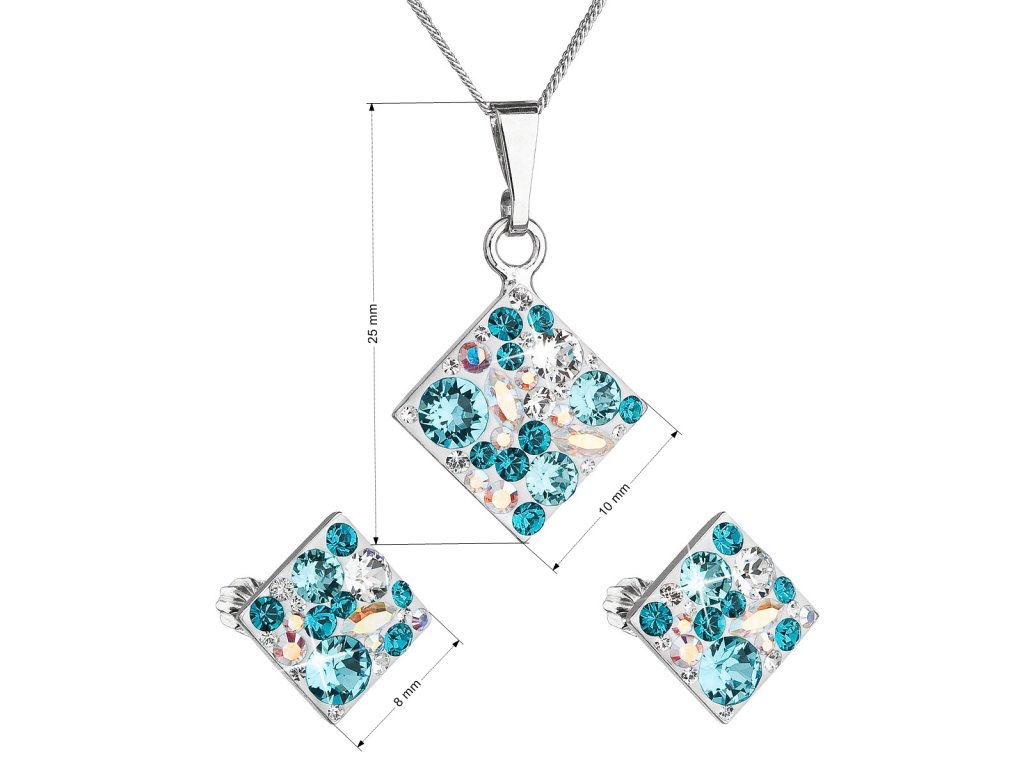 Parametry sady šperků s krystaly Swarovski náušnice, řetízek a přívěsek modrý kosočtverec 39126.3 turquoise
