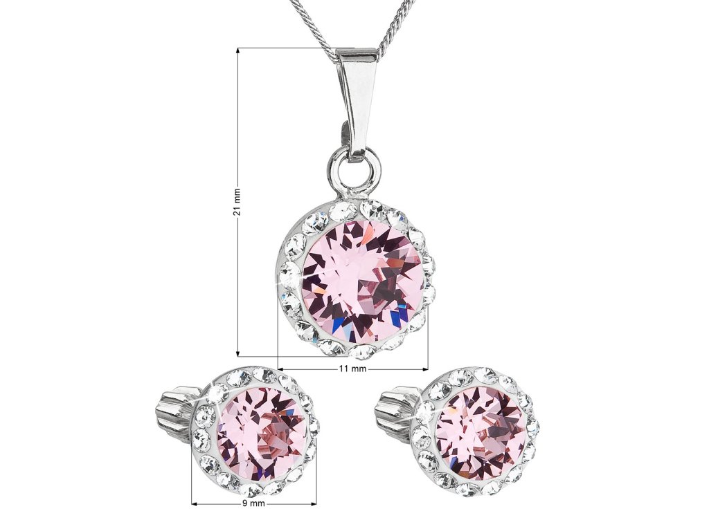 Sada šperků s krystaly Swarovski náušnice, řetízek a přívěsek růžové kulaté 39352.3 light rose