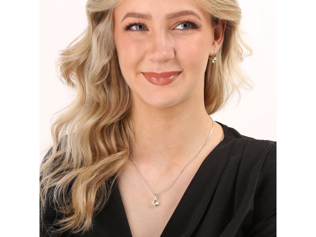 Ráda byste si pořídila šperky, které si můžete vzít k jakémukoliv outfitu? Doporučujeme elegantní a jednoduchou sadu šperků 39140.3 se Swarovski krystaly.Souprava 39140.3 obsahuje visací náušnice, přívěsek ve stejném designu a řetízek. Šperky jsou vyrobeny ze stříbra ryzosti 925/1000, které prošlo povrchovou úpravou rhodiem. Rhodium chrání šperk proti zčernání, zežloutnutí i poškrábání. Přívěšek i náušnice jsou zdobeny kulatými Swarovski krystaly ve žluté barvě. Náušnice mají zapínání na klapku. Jelikož šperky neobsahuji žádný přídavek niklu, mohou je bez obav nosit i alergici.