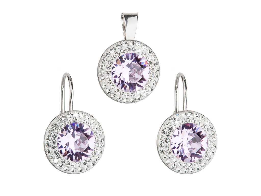 Sada šperků s krystaly Swarovski náušnice a přívěsek fialové kulaté 39107.3