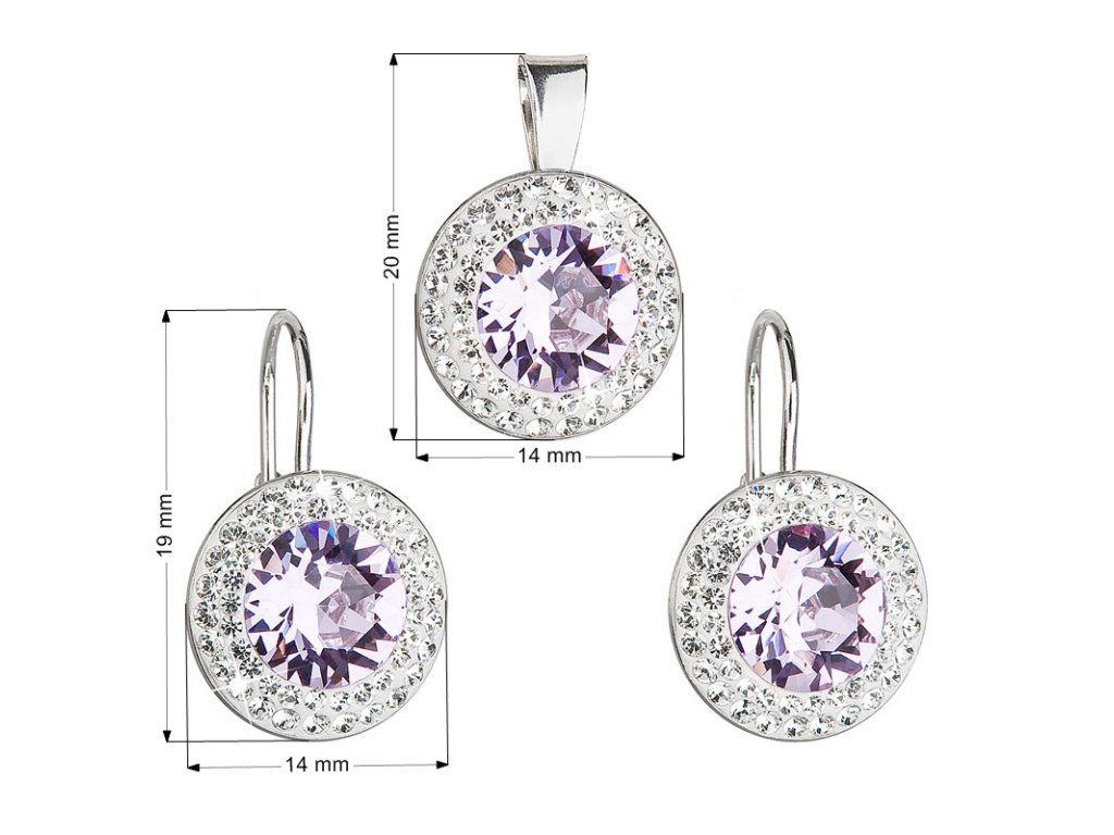 Parametry sady šperků s krystaly Swarovski náušnice a přívěsek fialové kulaté 39107.3
