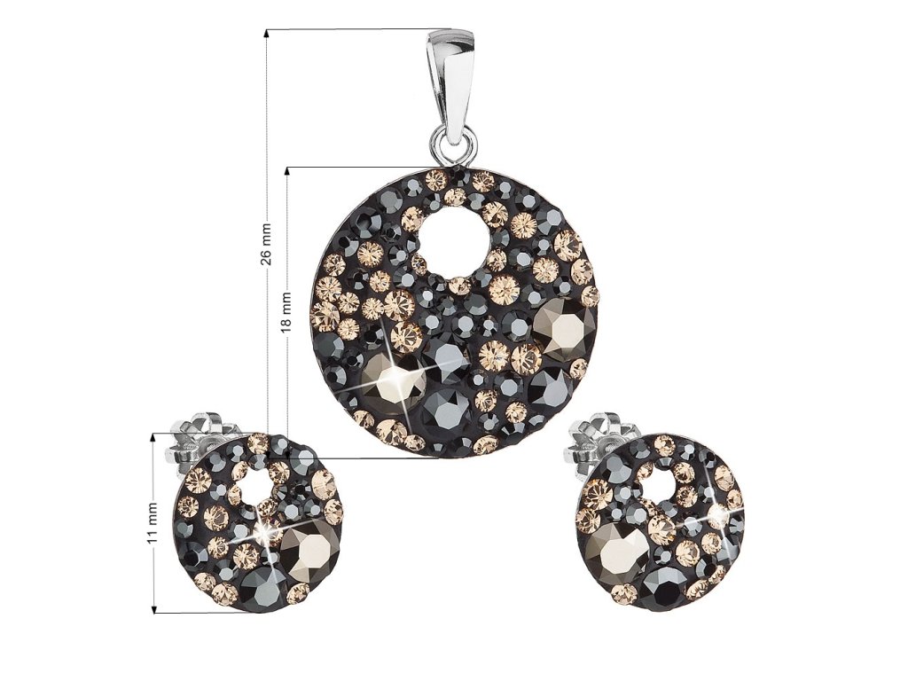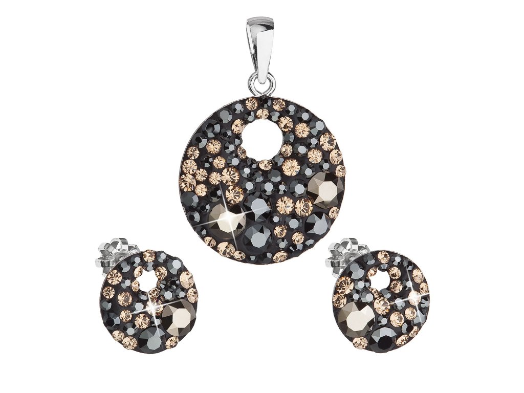 Sada šperků s krystaly Swarovski náušnice a přívěsek mix barev černá hnědá zlatá kulaté 39148.4 colorado