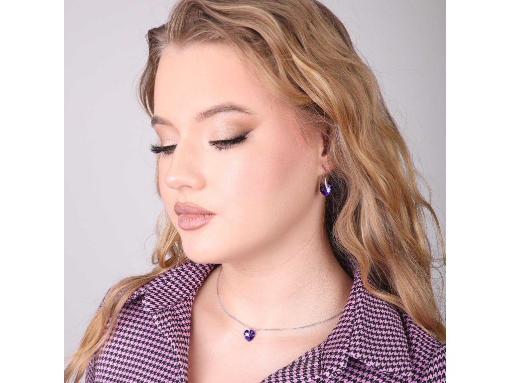 Parametry sady šperků s krystaly Swarovski náušnice a přívěsek modrá srdce 39003.5 heliotrope