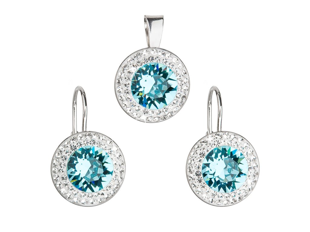 Sada šperků s krystaly Swarovski náušnice a přívěsek modré kulaté 39107.3 turquoise