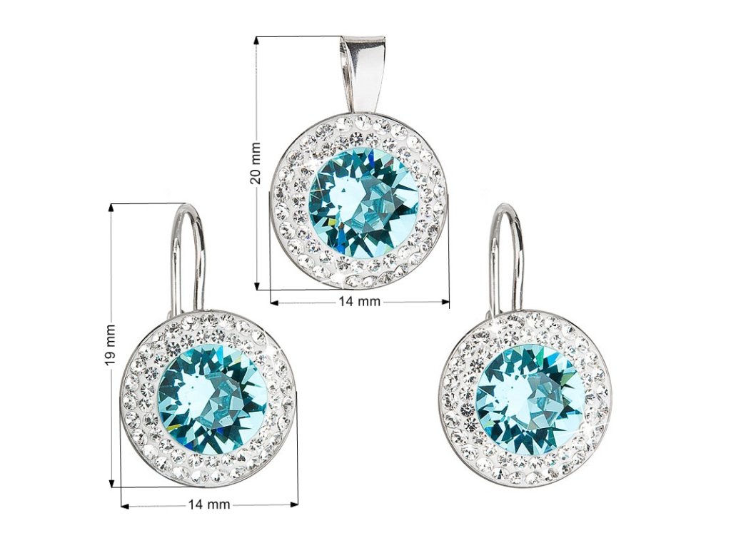 Parametry sady šperků s krystaly Swarovski náušnice a přívěsek modré kulaté 39107.3 turquoise