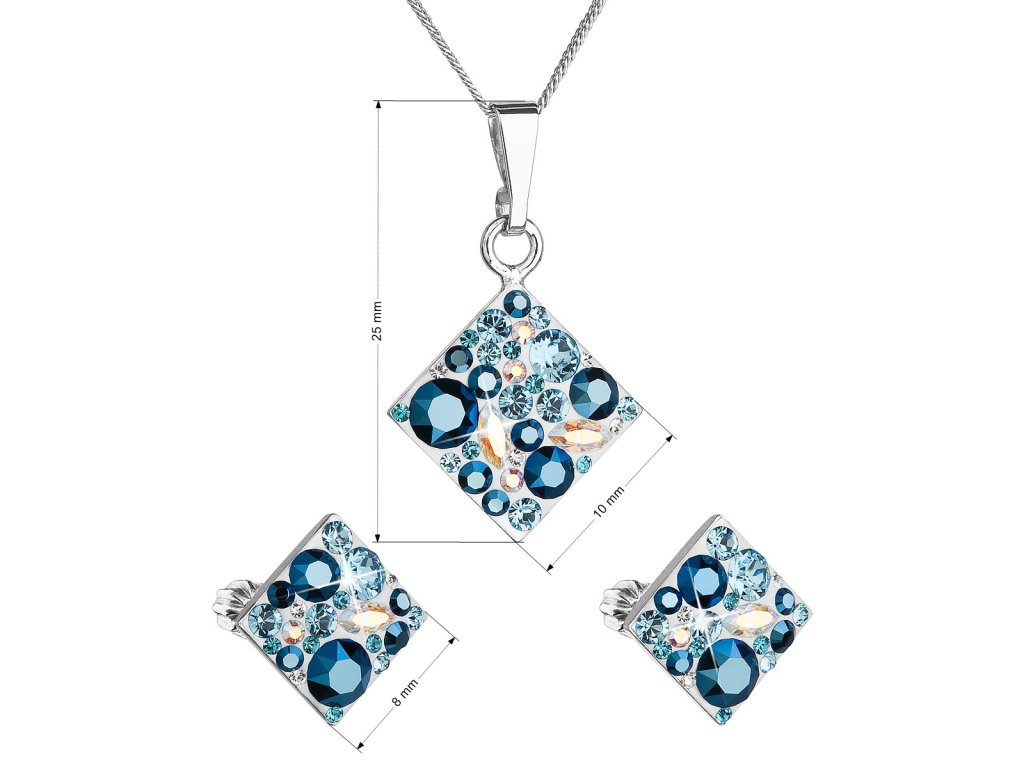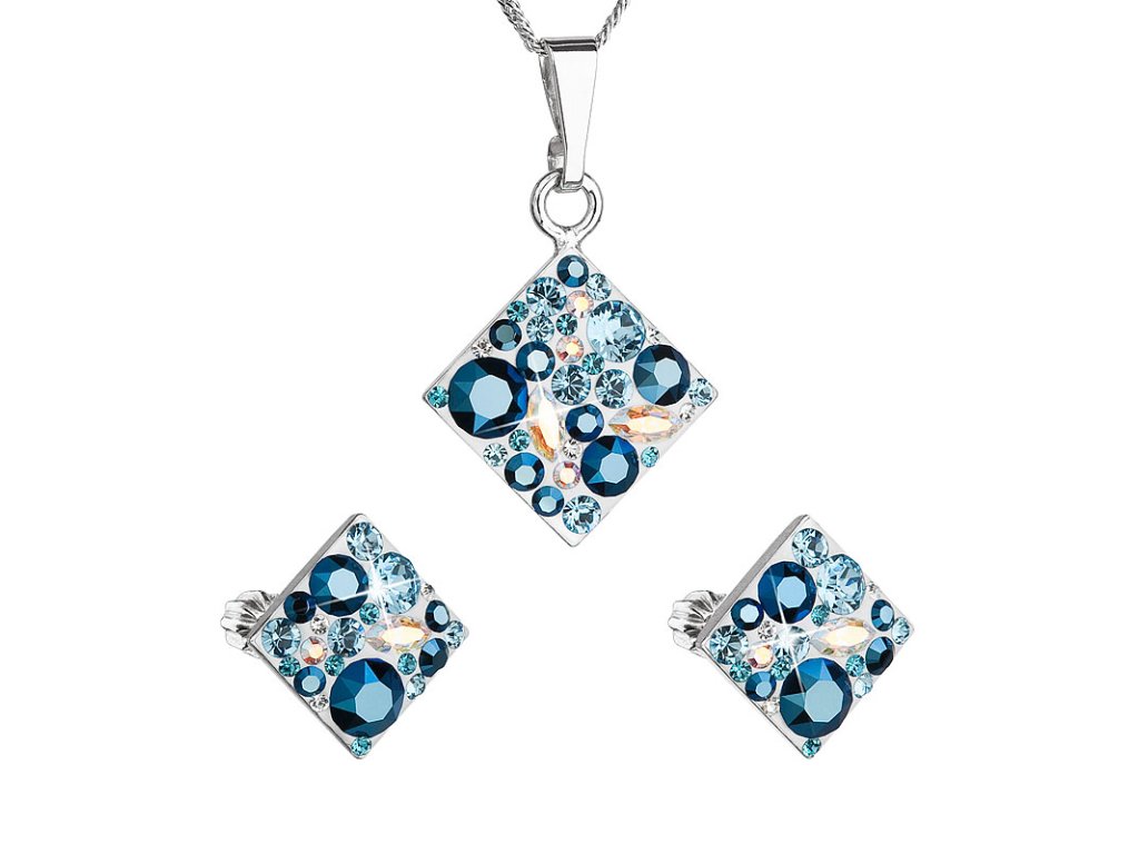 Sada šperků s krystaly Swarovski náušnice a přívěsek modrý kosočtverec 39126.3 aqua