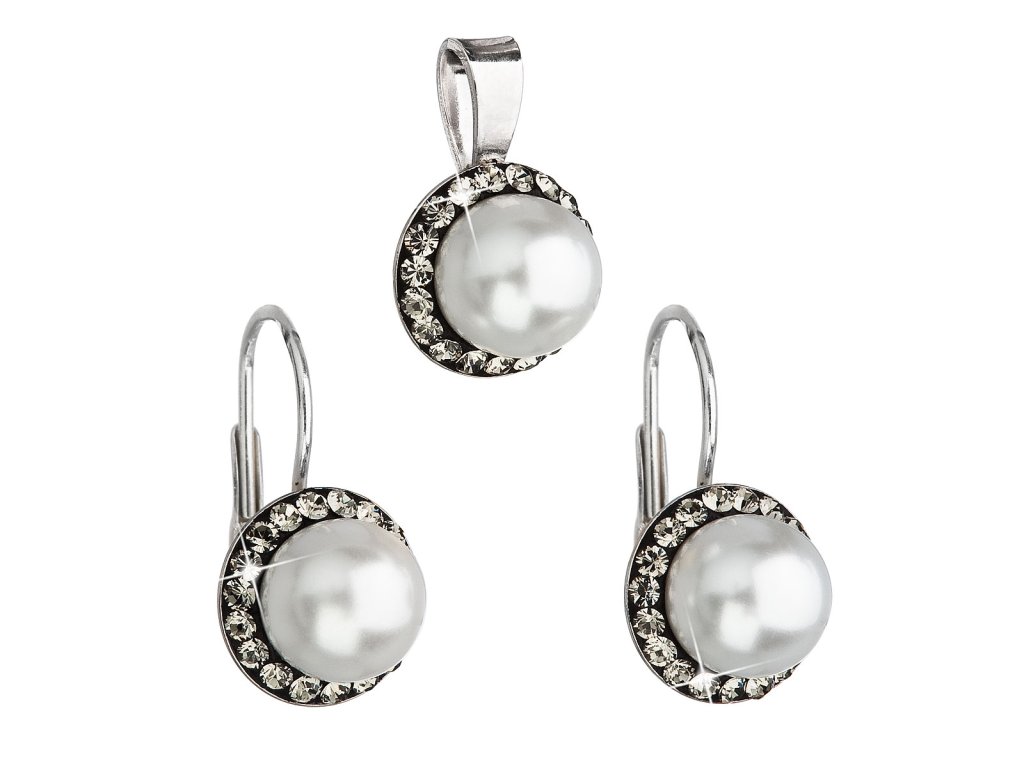 Sada šperků s krystaly Swarovski náušnice a přívěsek šedá perla kulaté 39091.3