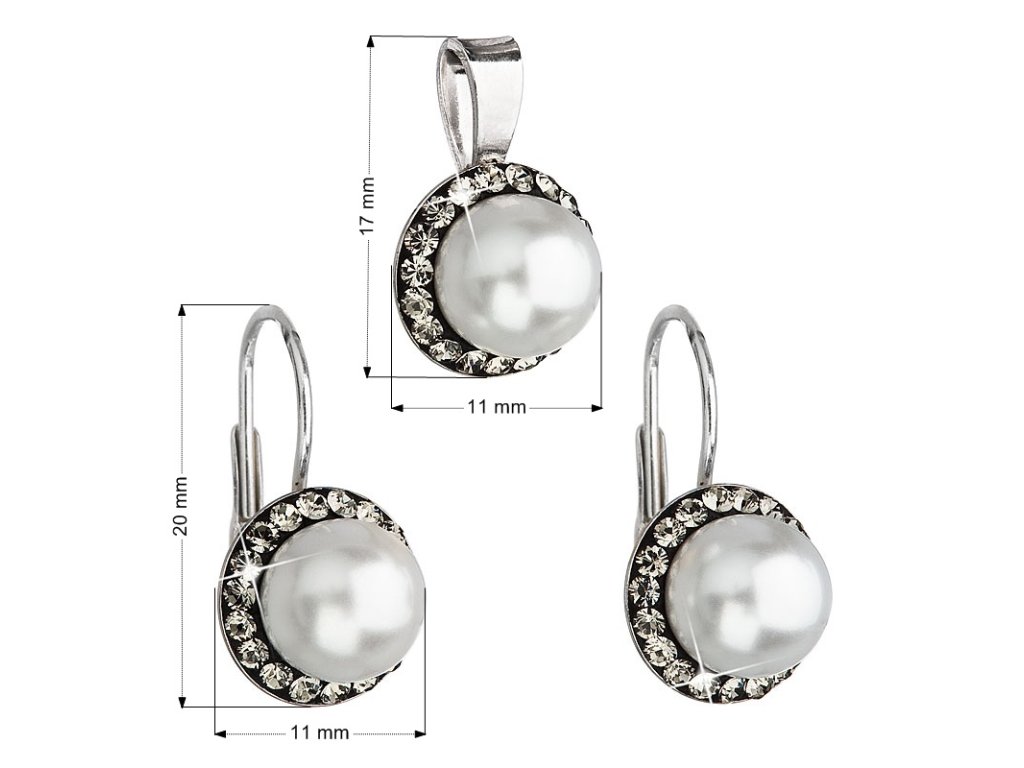 Parametry sady šperků s krystaly Swarovski náušnice a přívěsek šedá perla kulaté 39091.3