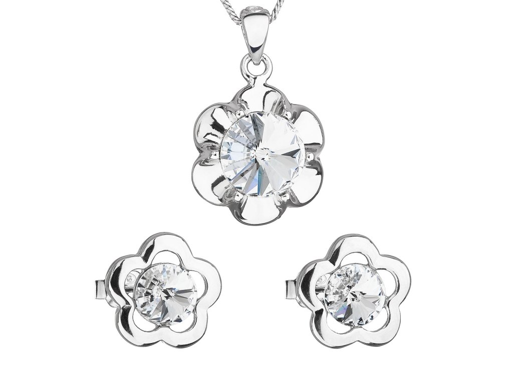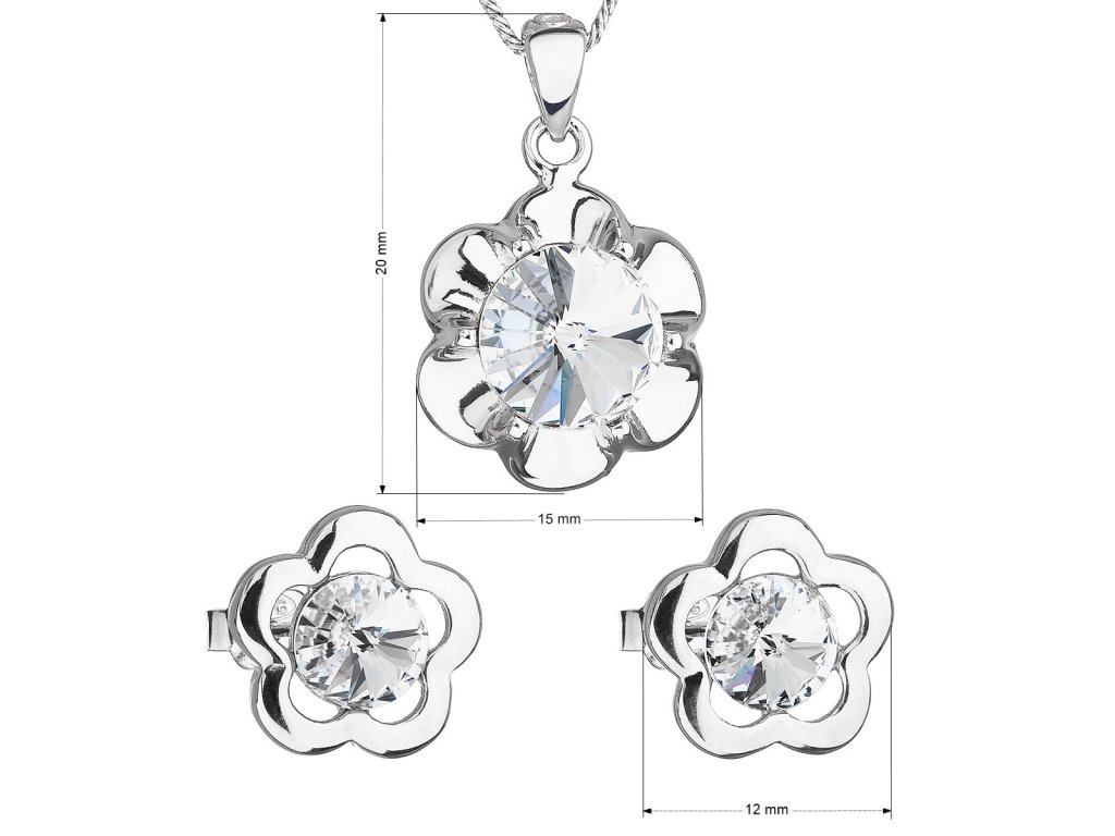 Parametry sady šperků s krystaly Swarovski náušnice, řetízek a přívěsek bílá kytička 39173.1