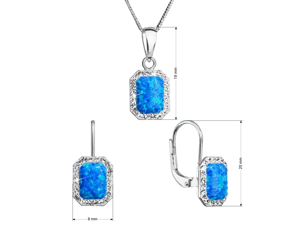 Parametry sady šperků se syntetickým opálem a krystaly Preciosa náušnice a přívěšek modré 39175.1