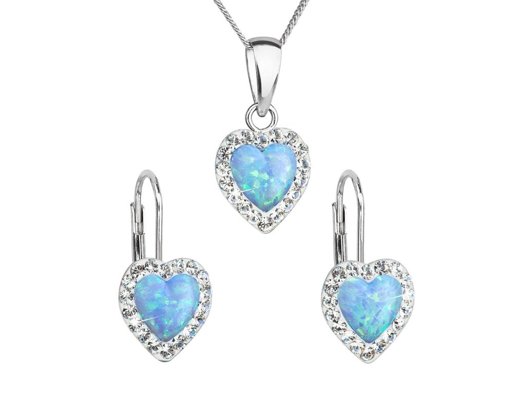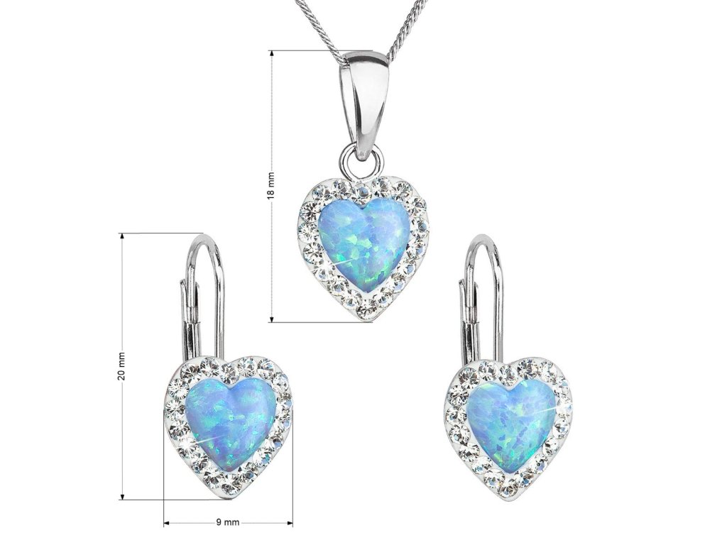 Parametry sady šperků se syntetickým opálem a krystaly Preciosa náušnice a přívěšek světle modré srdce 39161.1