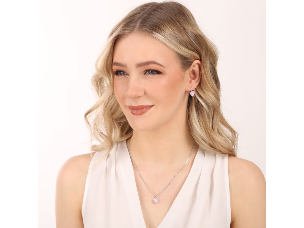 Ozdobte se originálními a elegantními šperky ze soupravy 39161.1, které se hodí k jakémukoliv outfitu.Sada 39161.1 obsahuje visací náušnice a řetízek s přívěskem ve tvaru srdíčka. Šperky jsou vyrobeny ze stříbra ryzosti 925/1000, které prošlo povrchovou úpravou rhodiem. Rhodium chrání šperk proti zčernání, zežloutnutí i poškrábání. Přívěšek i náušnice jsou zdobeny růžovým syntetickým opálem, který je navíc olemován ještě malými třpytivými Preciosa krystalky v bílé barvě. Náušnice mají zapínání na klapku. Jelikož šperky neobsahuji žádný přídavek niklu, mohou je bez obav nosit i alergici.