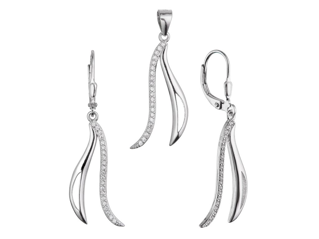 Elegantní sada šperků inspirovaná ladností vln – nadčasová kombinace lesklého stříbra a třpytivých zirkonů dodává těmto kouskům jemný vzhled. Každý šperk v sadě zdobí jemně tvarovaná vlnka, která symbolizuje pohyb, harmonii a eleganci. Přívěsek, dodávaný bez řetízku, vynikne na jakémkoli typu řetízku dle vašeho výběru. Perfektní volba pro milovníky výrazného designu. Skvělý dárek pro každou příležitost.