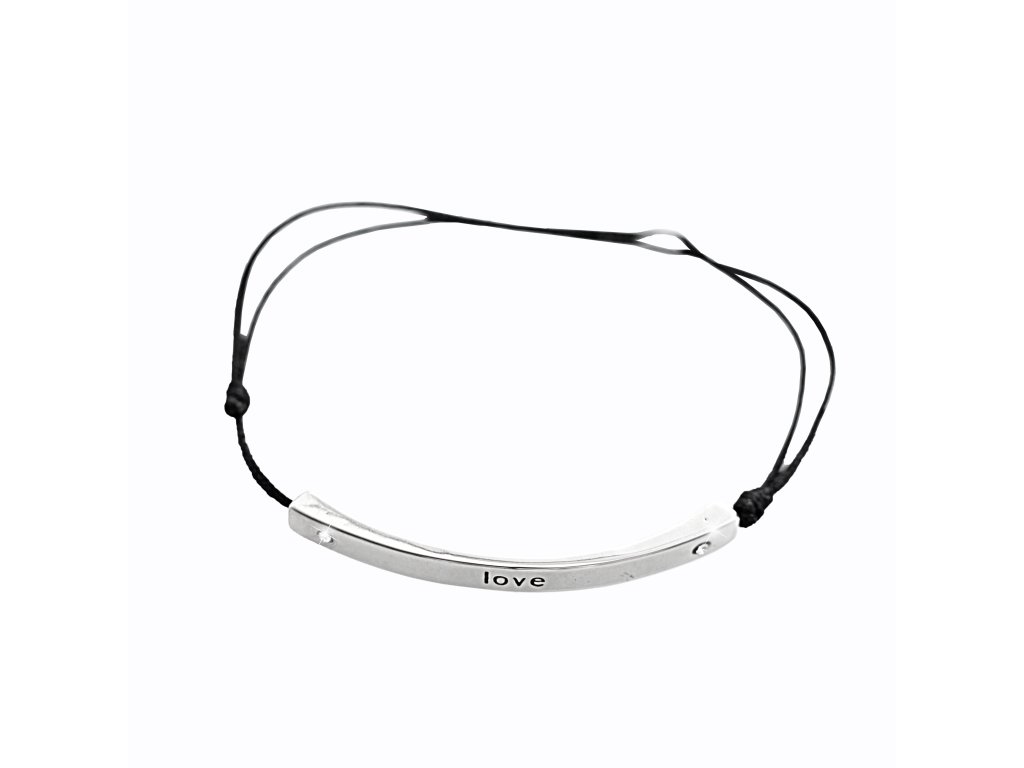 Šňůrkový náramek s ocelovou destičkou love a s krystaly Swarovski Crystal