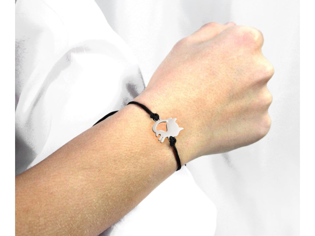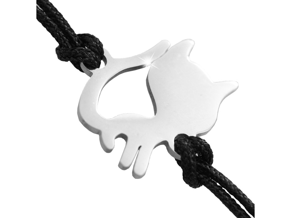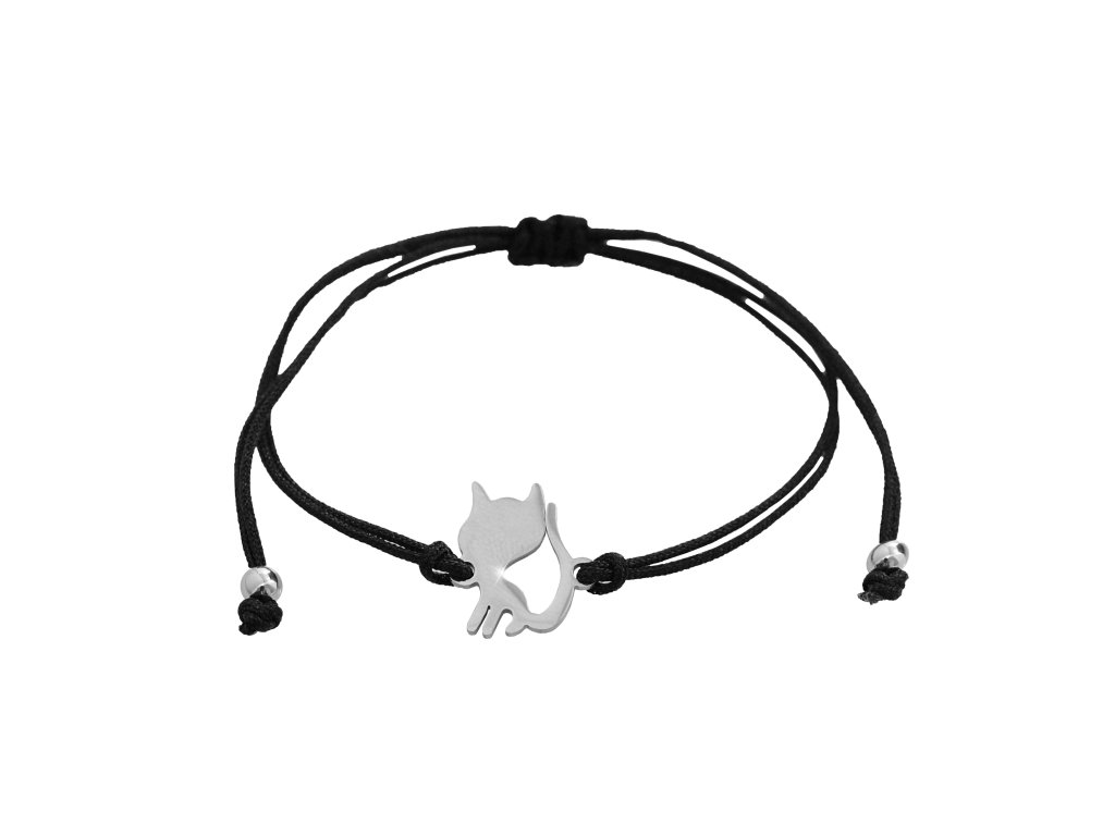 Šňůrkový náramek s ocelovým přívěskem kočky bez krystalů