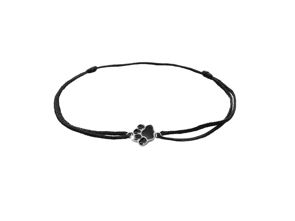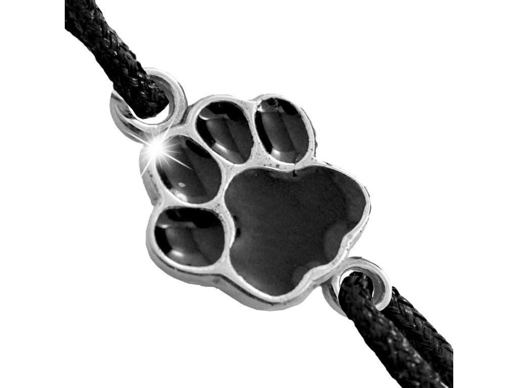 Šňůrkový náramek s ocelovým přívěskem psí tlapky s černým smaltem