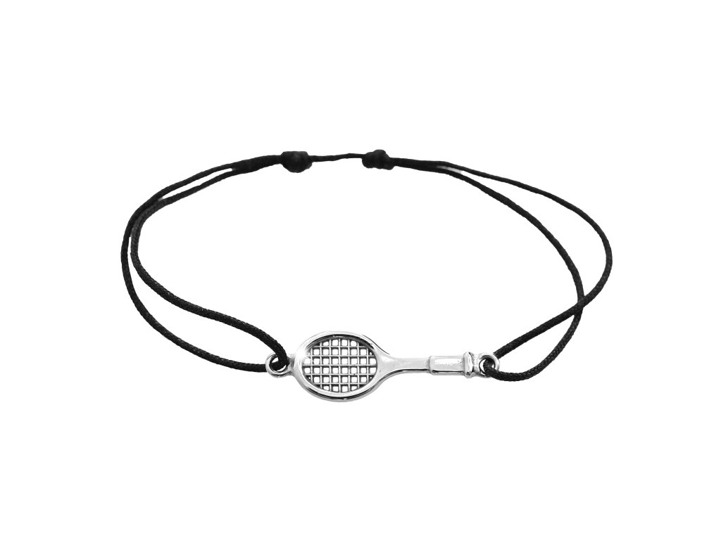 Šňůrkový náramek s ocelovým přívěskem tenisová raketa bez krystalů