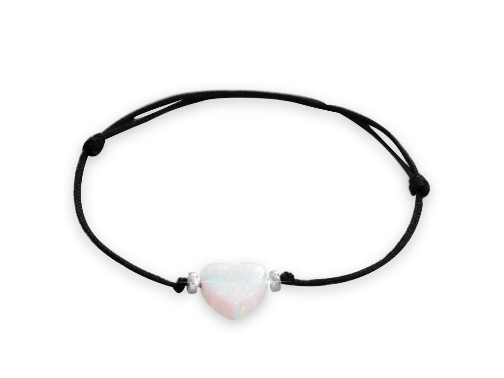 Šňůrkový náramek s opálovým srdíčkem White (Stříbro 925/1000)