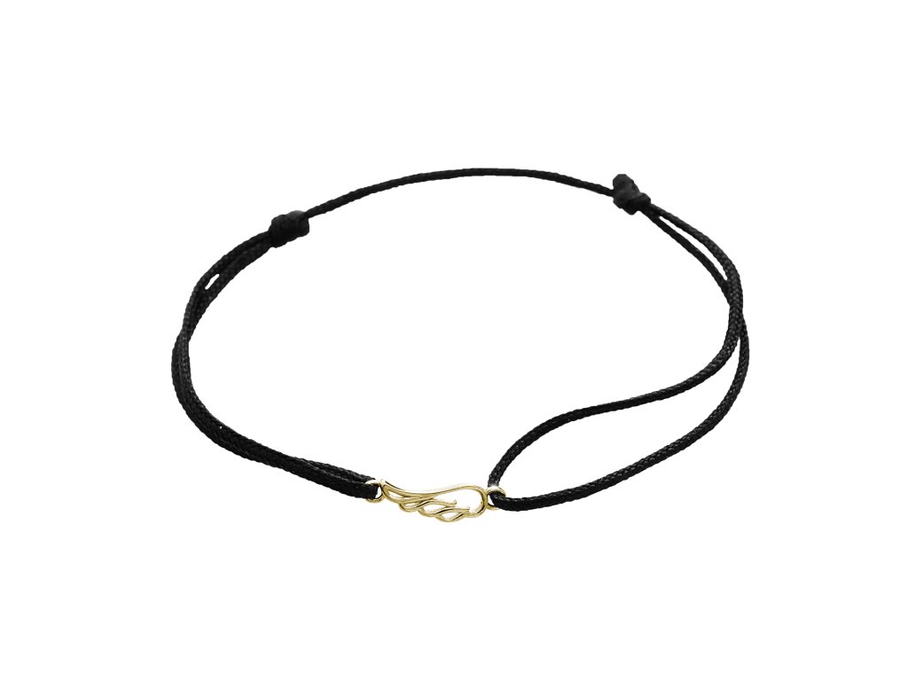 Šňůrkový náramek s pozlaceným stříbrným přívěskem mini křídla kovového bez krystalů (Stříbro 925/1000)