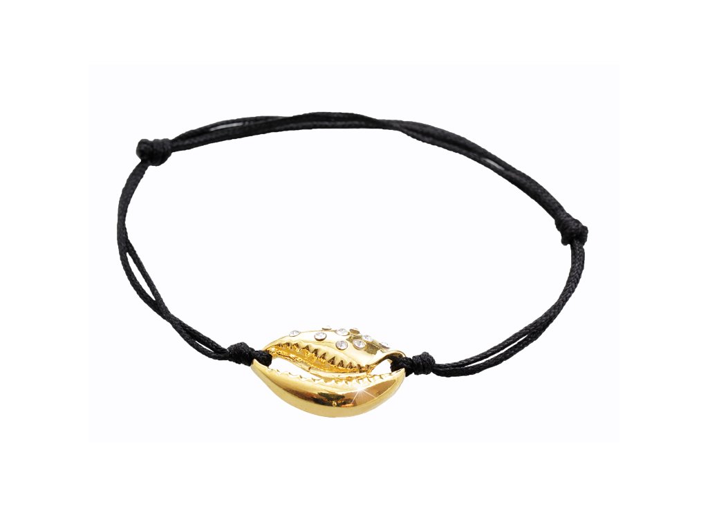 Šňůrkový náramek s přívěskem zlaté mušle z bižuterní slitiny zdobené krystaly Swarovski Crystal