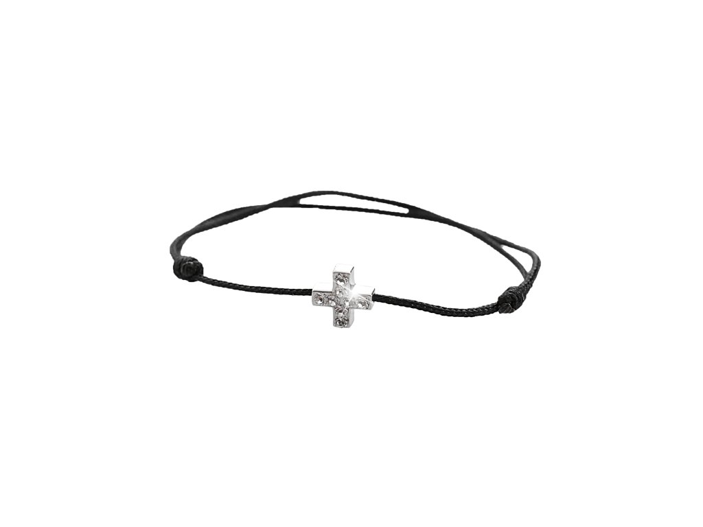 Šňůrkový náramek se stříbrným přívěskem kříže a krystaly Swarovski Crystal (Stříbro 925/1000)