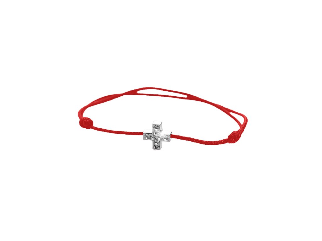 Šňůrkový náramek se stříbrným přívěskem kříže a krystaly Swarovski Crystal red (Stříbro 925/1000)