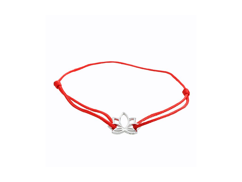 Šňůrkový náramek se stříbrným přívěskem leknínu bez krystalů red (Stříbro 925/1000)
