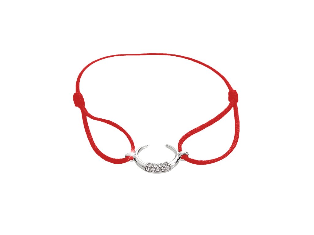Šňůrkový náramek se stříbrným přívěskem měsíce a krystaly Swarovski Crystal red (Stříbro 925/1000)