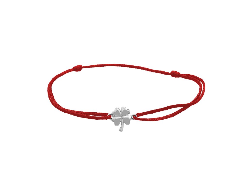 Šňůrkový náramek se stříbrným přívěskem mini čtřlístku kovového bez krystalů red (Stříbro 925/1000)