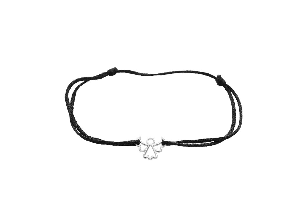 Šňůrkový náramek se stříbrným přívěskem mini obvodového anděla kovového bez krystalů (Stříbro 925/1000)