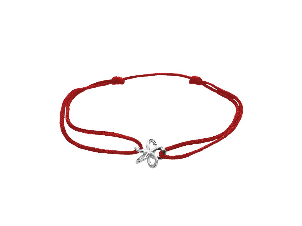 Šňůrkový náramek se stříbrným přívěskem mini propleteného květu kovového bez krystalů red (Stříbro 925/1000)