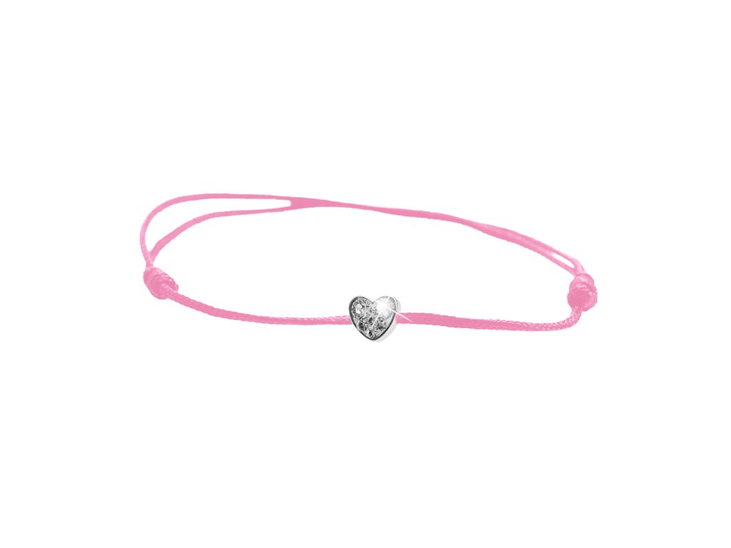 Šňůrkový náramek se stříbrným přívěskem srdce a krystaly Swarovski Crystal pink (Stříbro 925/1000)