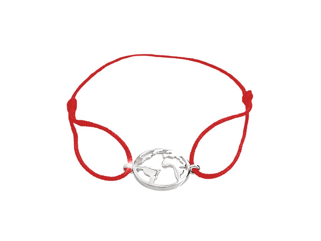 Šňůrkový náramek se stříbrným přívěskem země bez krystalů red (Stříbro 925/1000)
