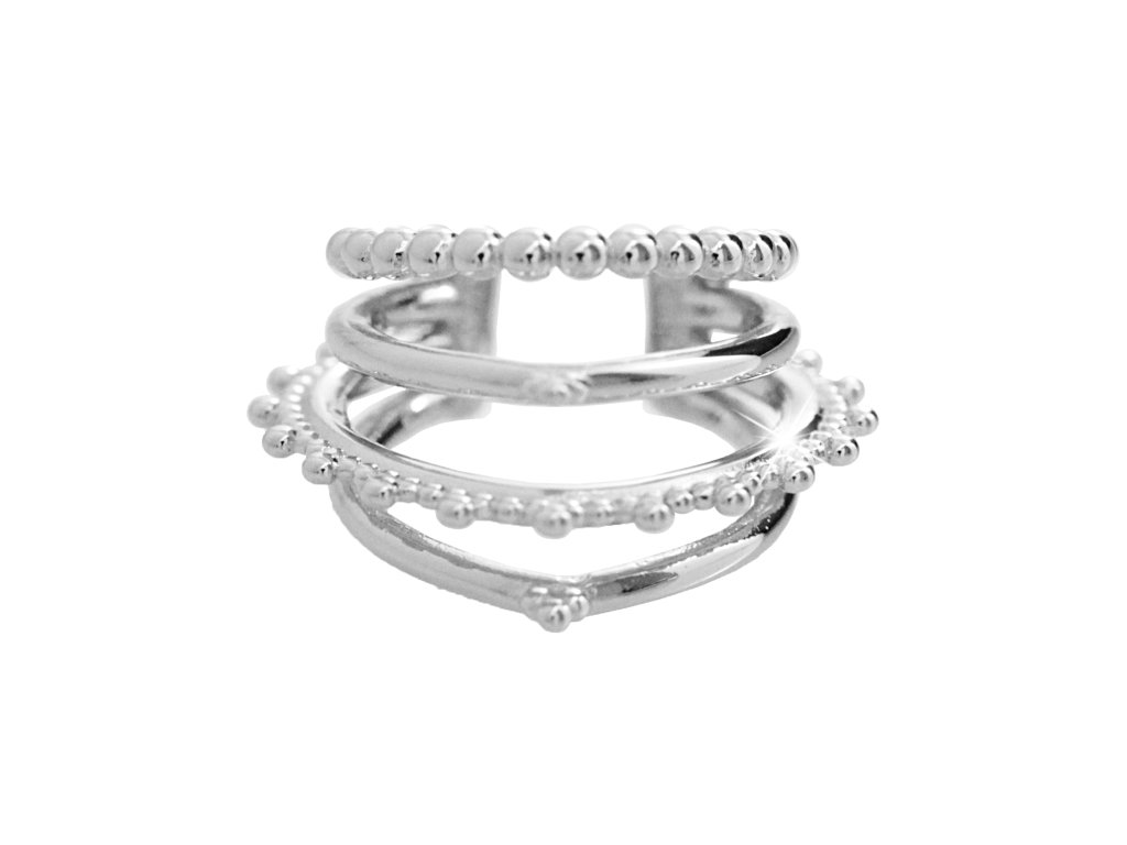 Stříbrná nasazovací single náušnice spojená ze čtyř různě zdobených kroužků (Stříbro 925/1000)