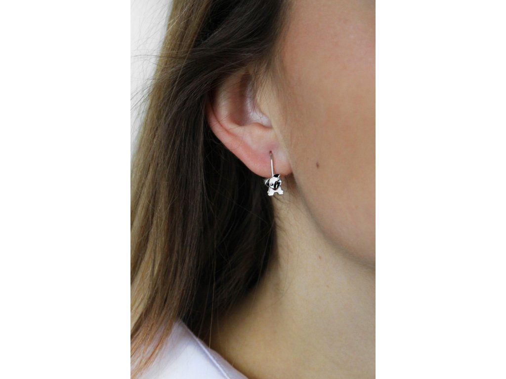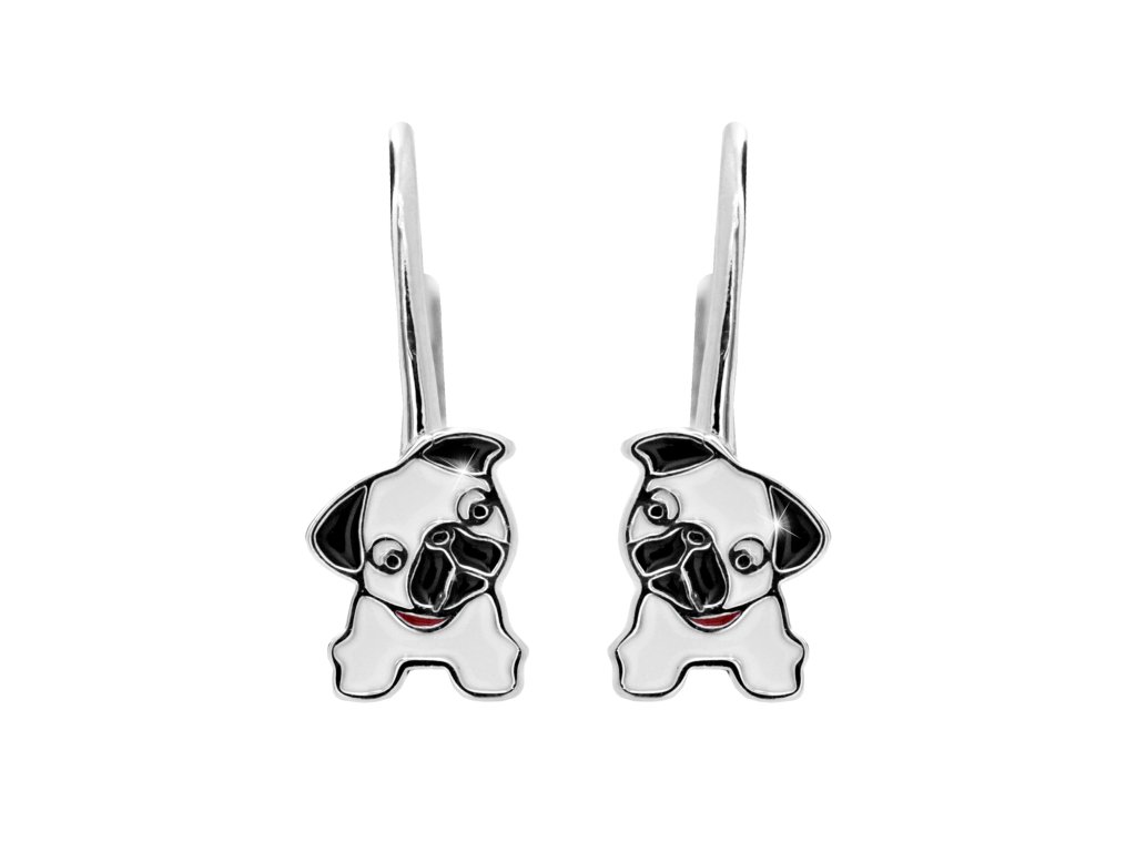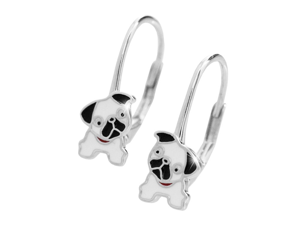Stříbrné dětské náušnice klapky pejsek s barevným smaltem (Stříbro 925/1000)
